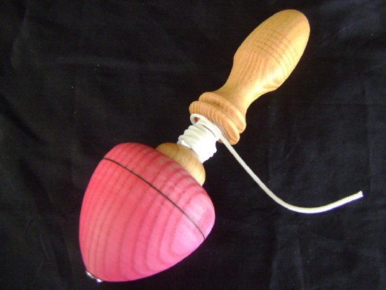 Der Abziehkreisel ist aus besonders hartem Holz und deshalb sehr stabil. Die um den Stiel gewickelte Schnur wird schnell abgezogen und der Kreisel kann eine Rekordlaufzeit von bis vier Minuten erreichen. Dreiteilig mit extra langer Stauchzapfen und die Oberfläche ist geölt.